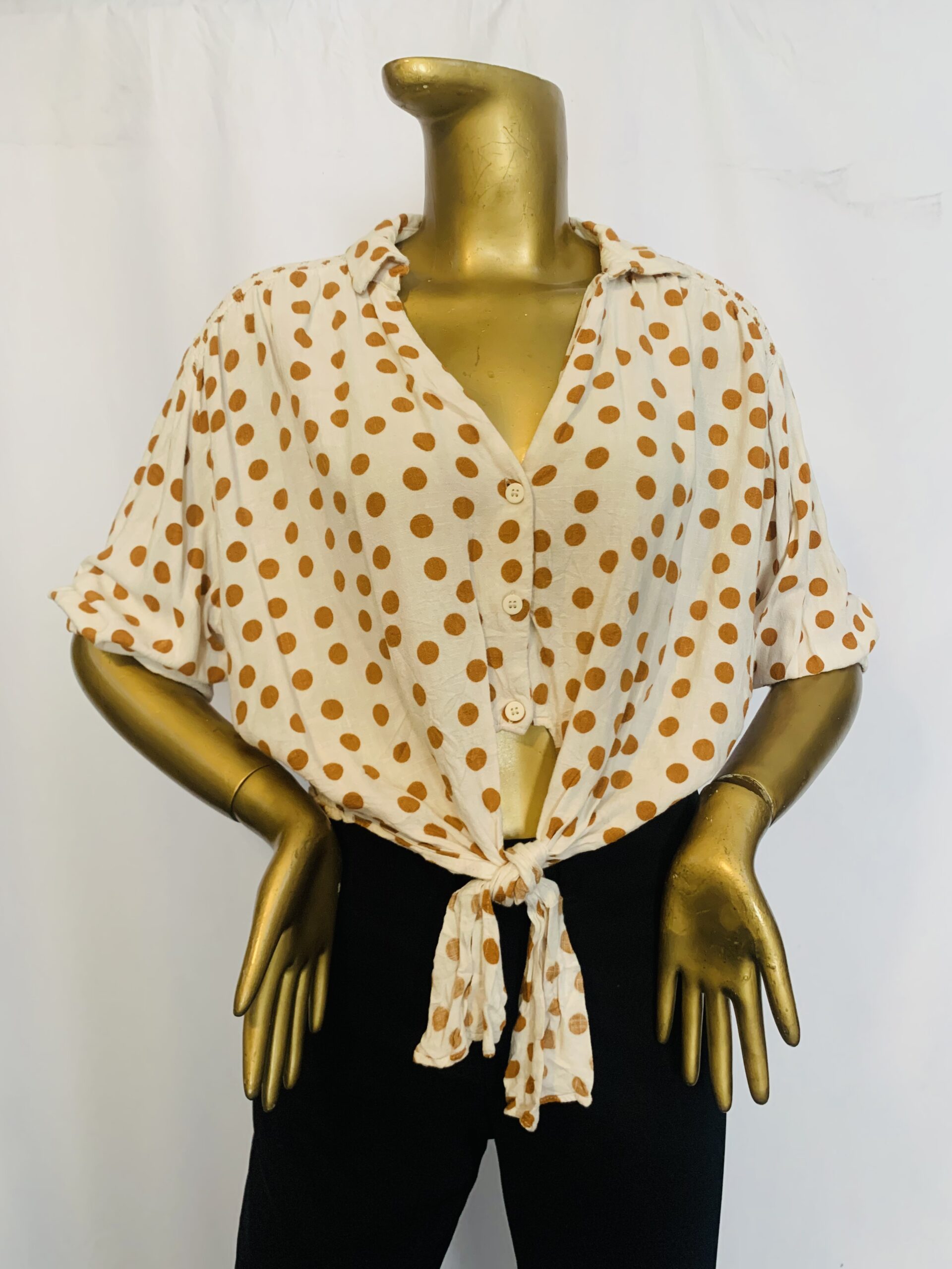 Be the first to review “Brown Poker Dot Wrap Top” Cancel reply